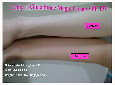 ♥ Kesan pencerahan daapt dilihat dlm masa yang sangat singkat kerana kandungan L-Glthatione yang sangat tinggi. Cathy Magic Cream juga memberi kesan wangian berpanjangan untuk pemakai.